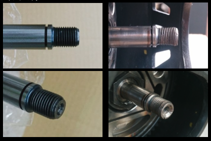 下記画像左は新品時のクランクシャフト。 画像右がクラッチプーラーを使用せずに無理に外そうとして先端が膨らんでしまったクランクシャフトです。