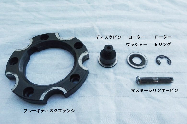 ブレーキパッド、ブレーキディスクフランジ、ブレーキディスクピン、ワッシャー、Eリング、スナップピン、キャリパーピストンシール、ダストガードシール、マスターシリンダーピストンシール、 マスターシリンダーピン(16mm、35.5mm)、マスターシリンダーダストカバー等